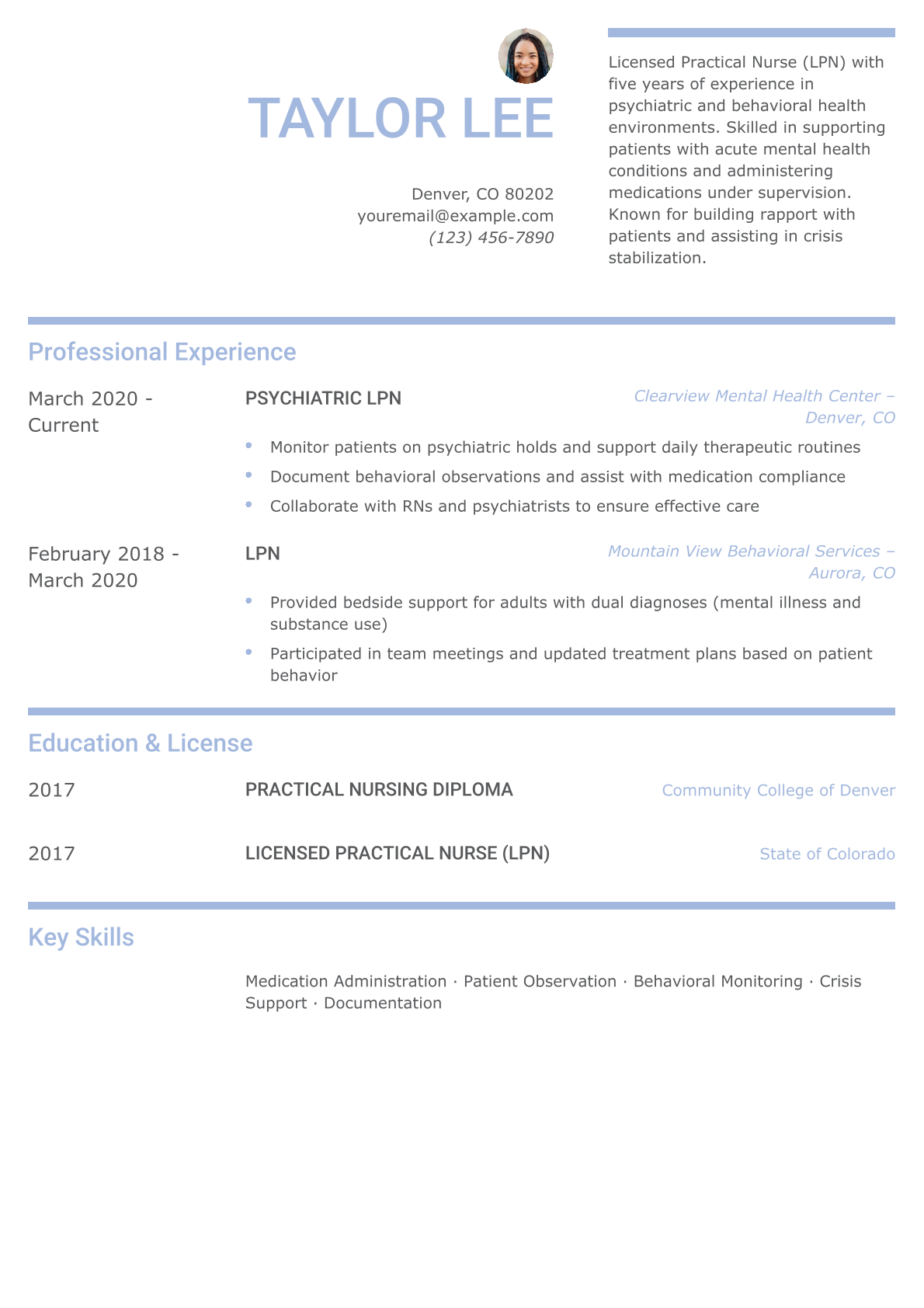 LPN Psychiatric Nurse Resume Example