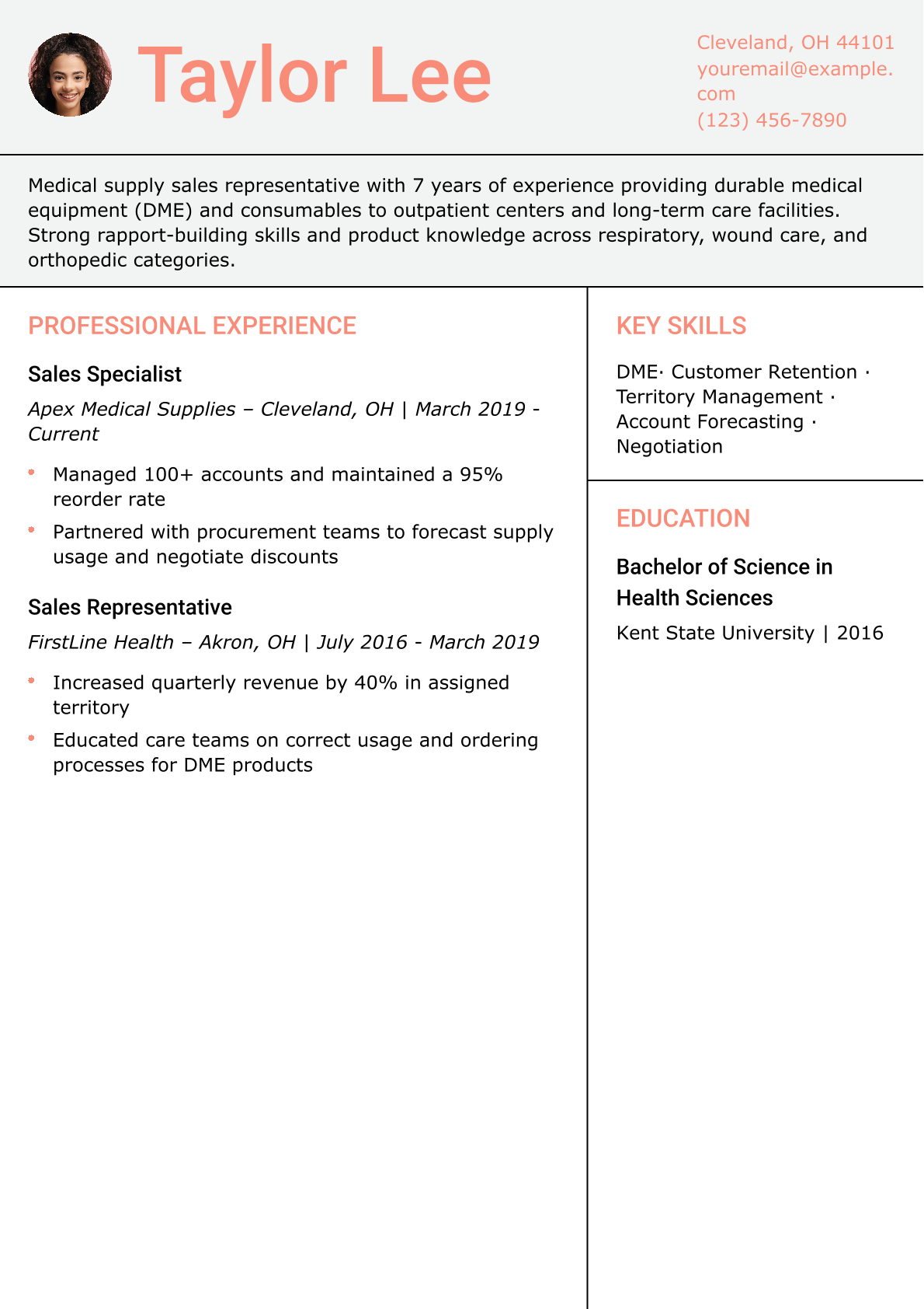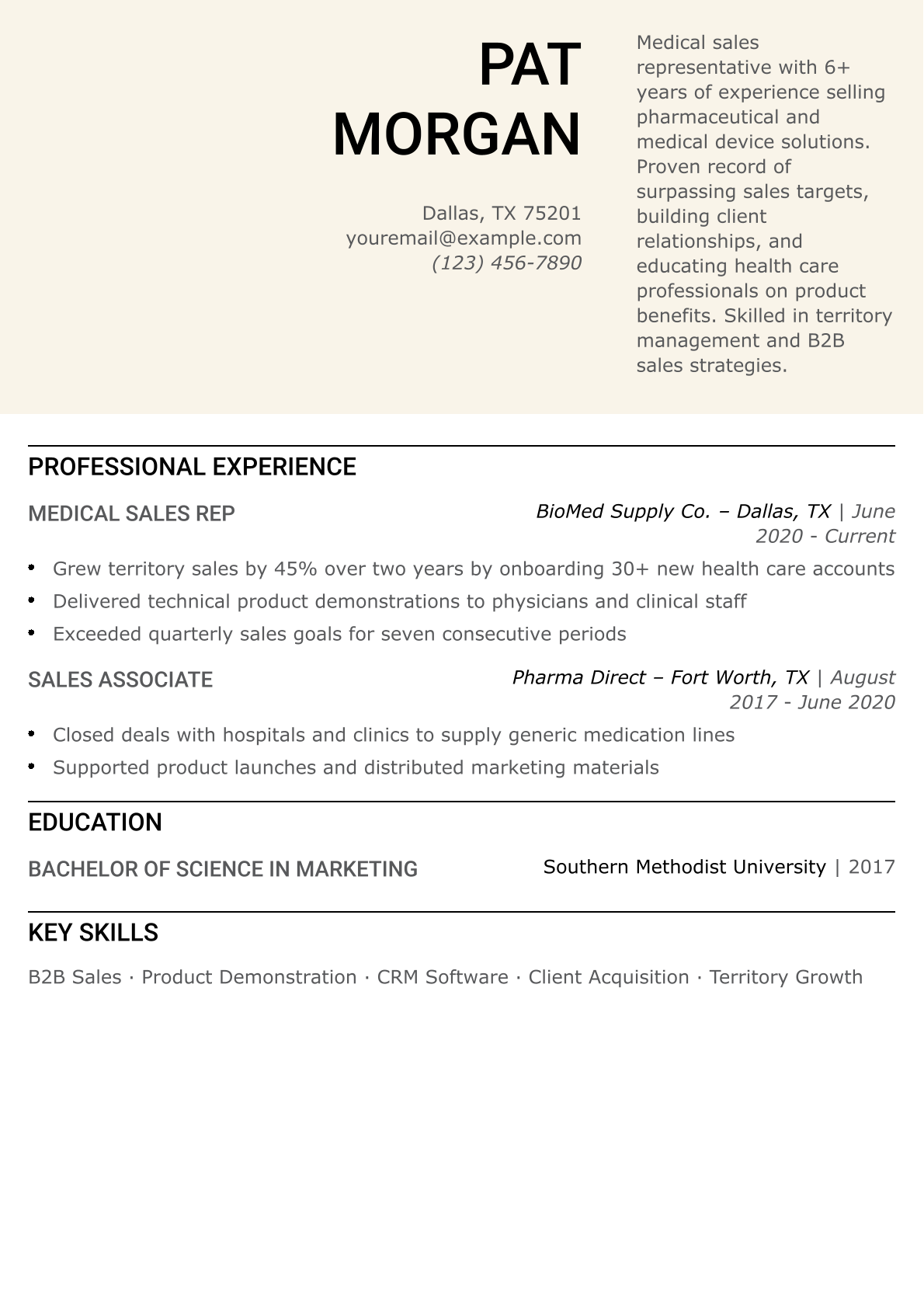 Medical Sales Representative Resume Example