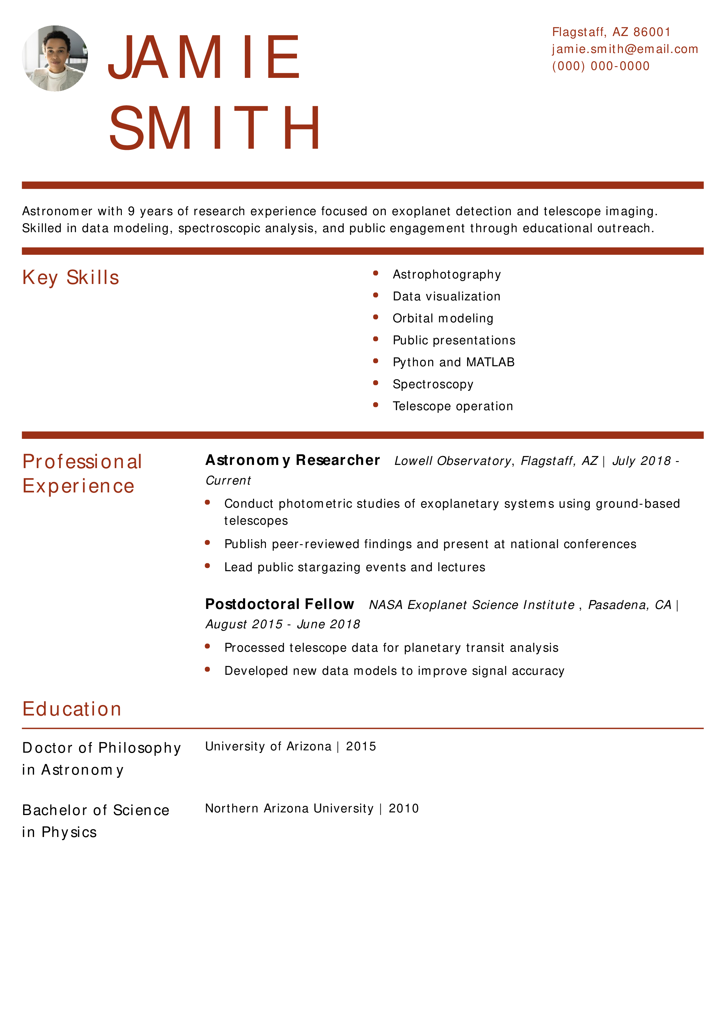 Astronomer Resume