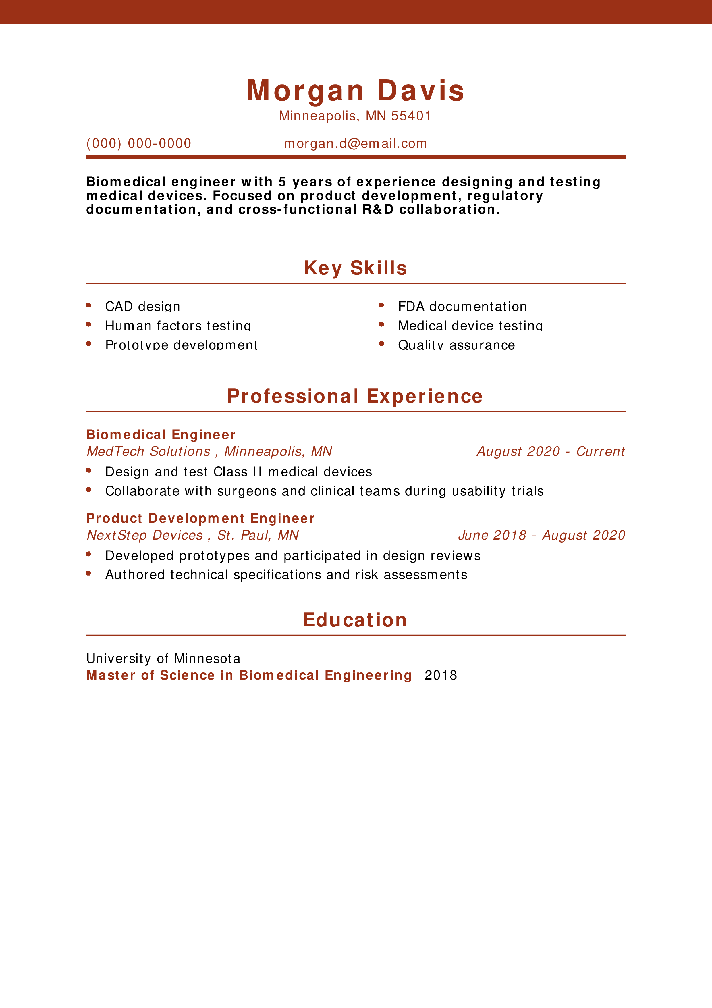 Biomedical Engineer Resume