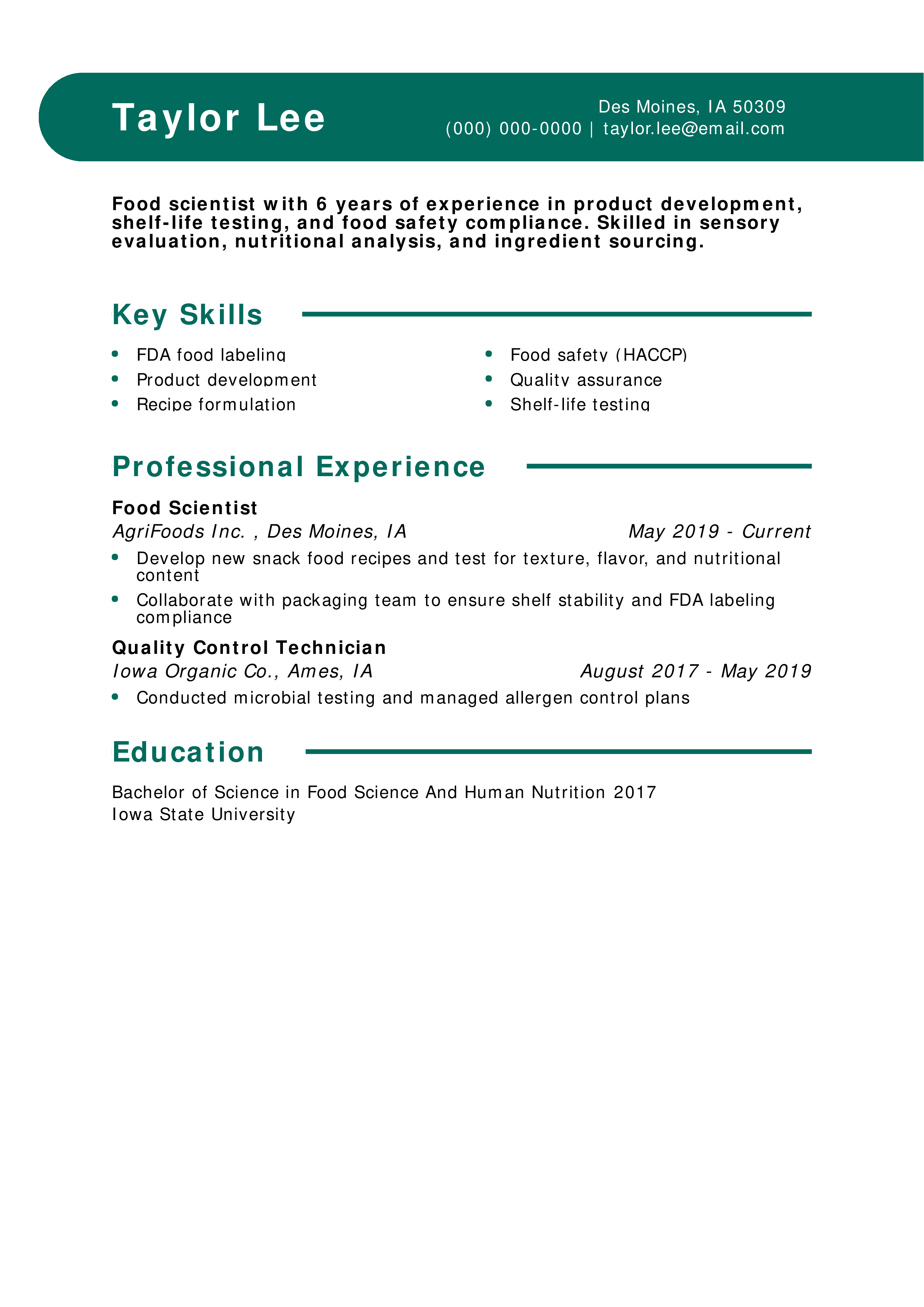 Highlight compliance with food safety standards like HACCP or FDA labeling. For help with layout, see Should a Resume Be One Page?