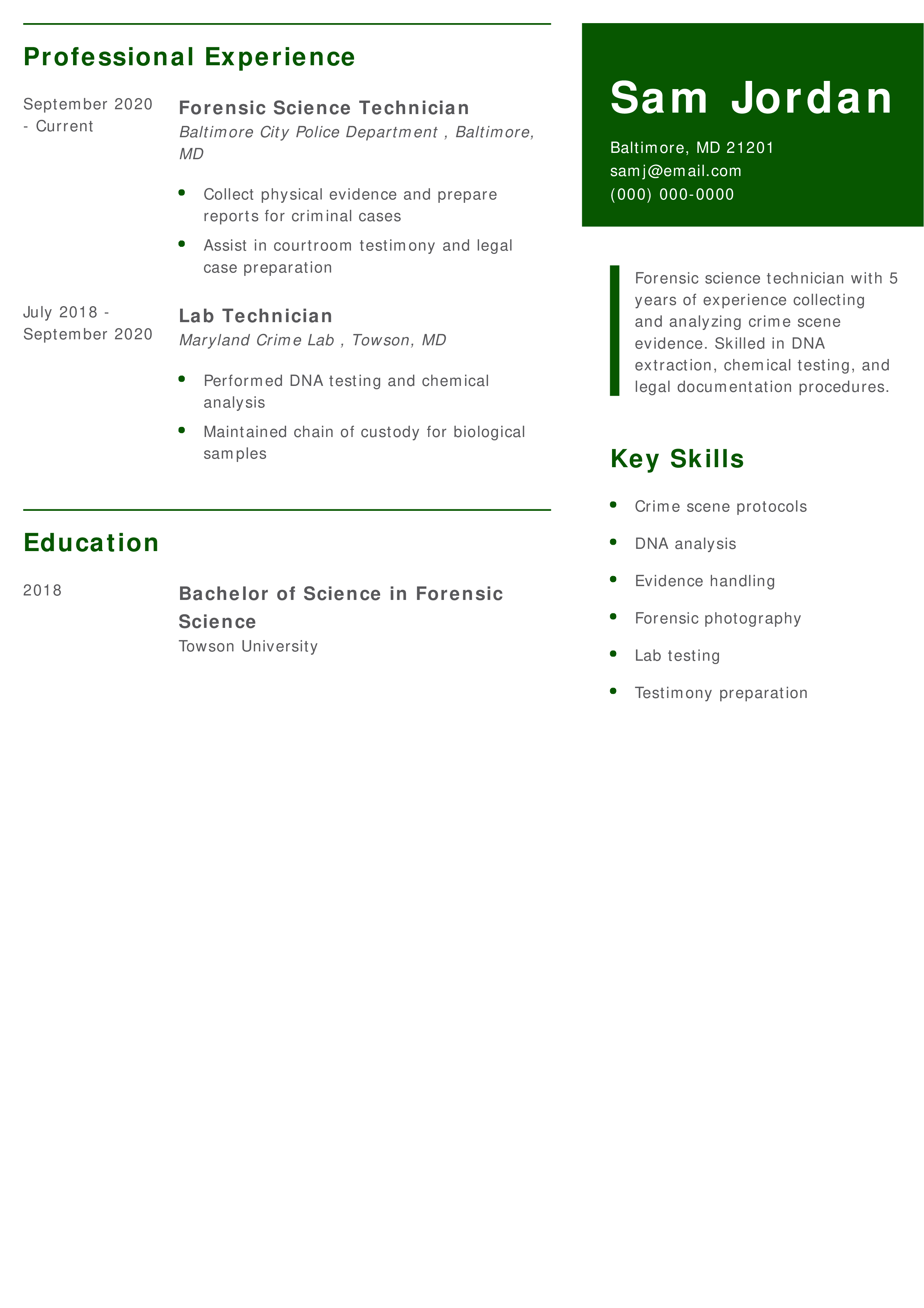 Forensic Science Technician Resume