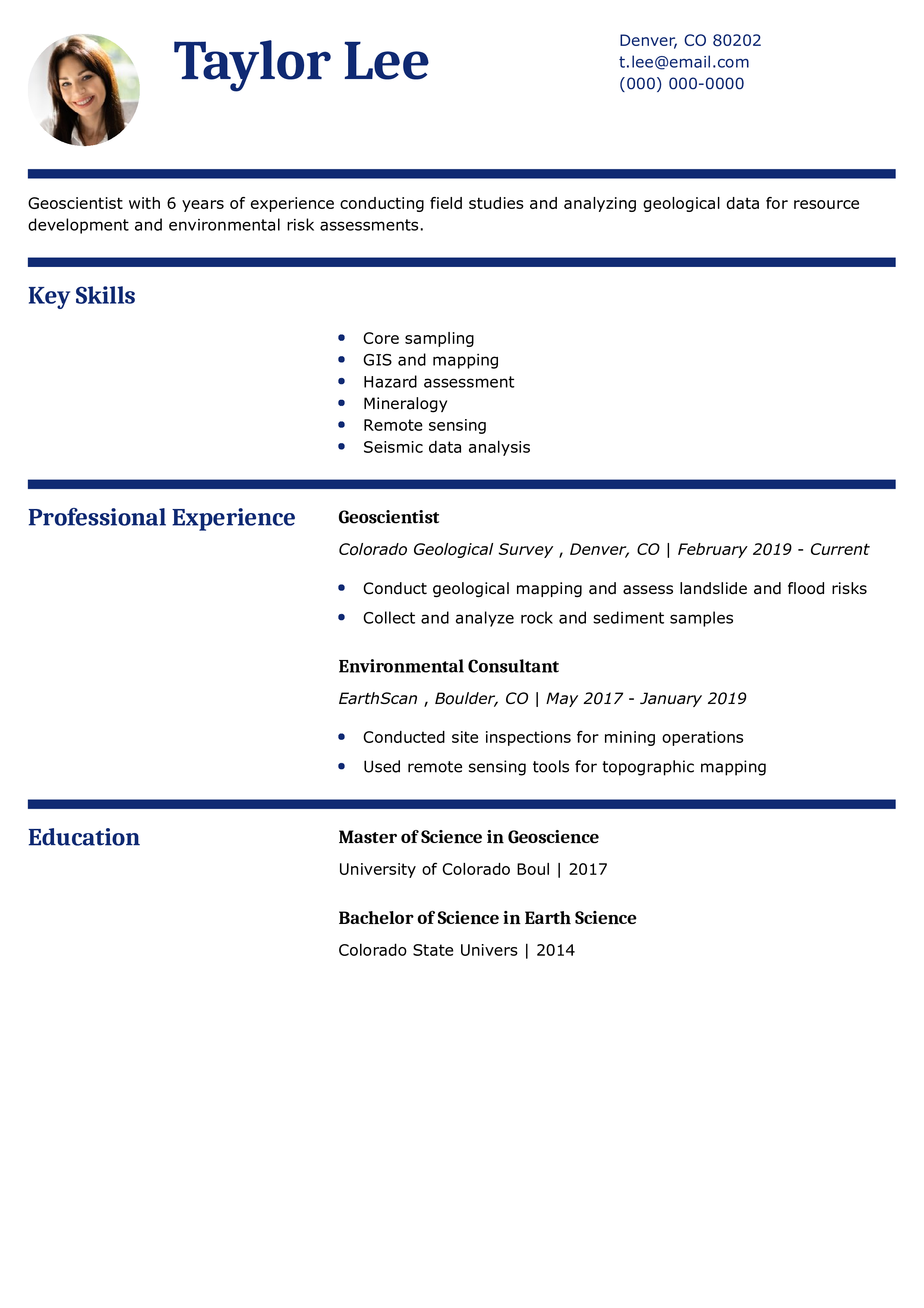 Geoscientist Resume