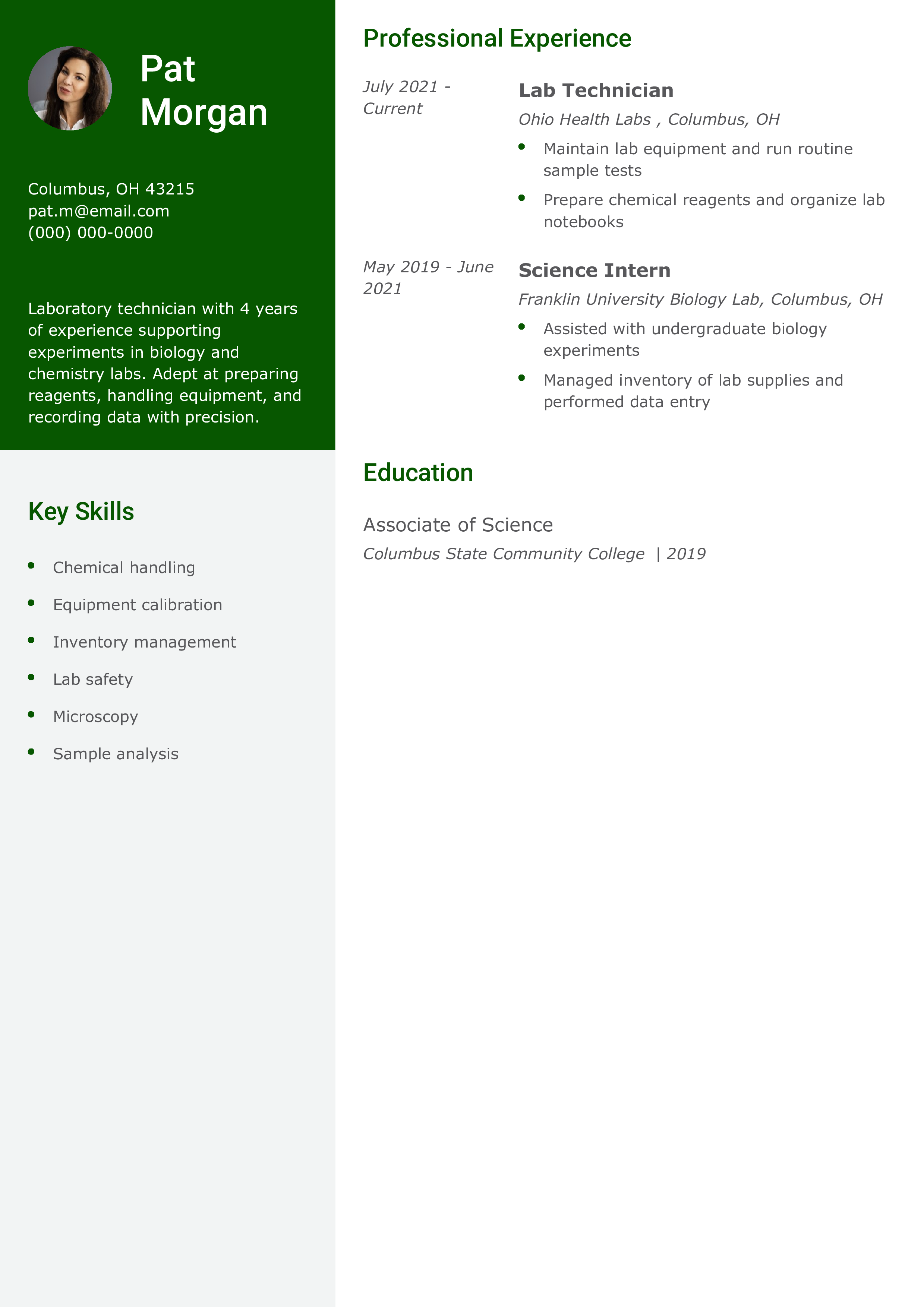 This resume is good because it clearly snapshots the candidate’s practical lab support experience — ideal for early-career positions in research or diagnostics.