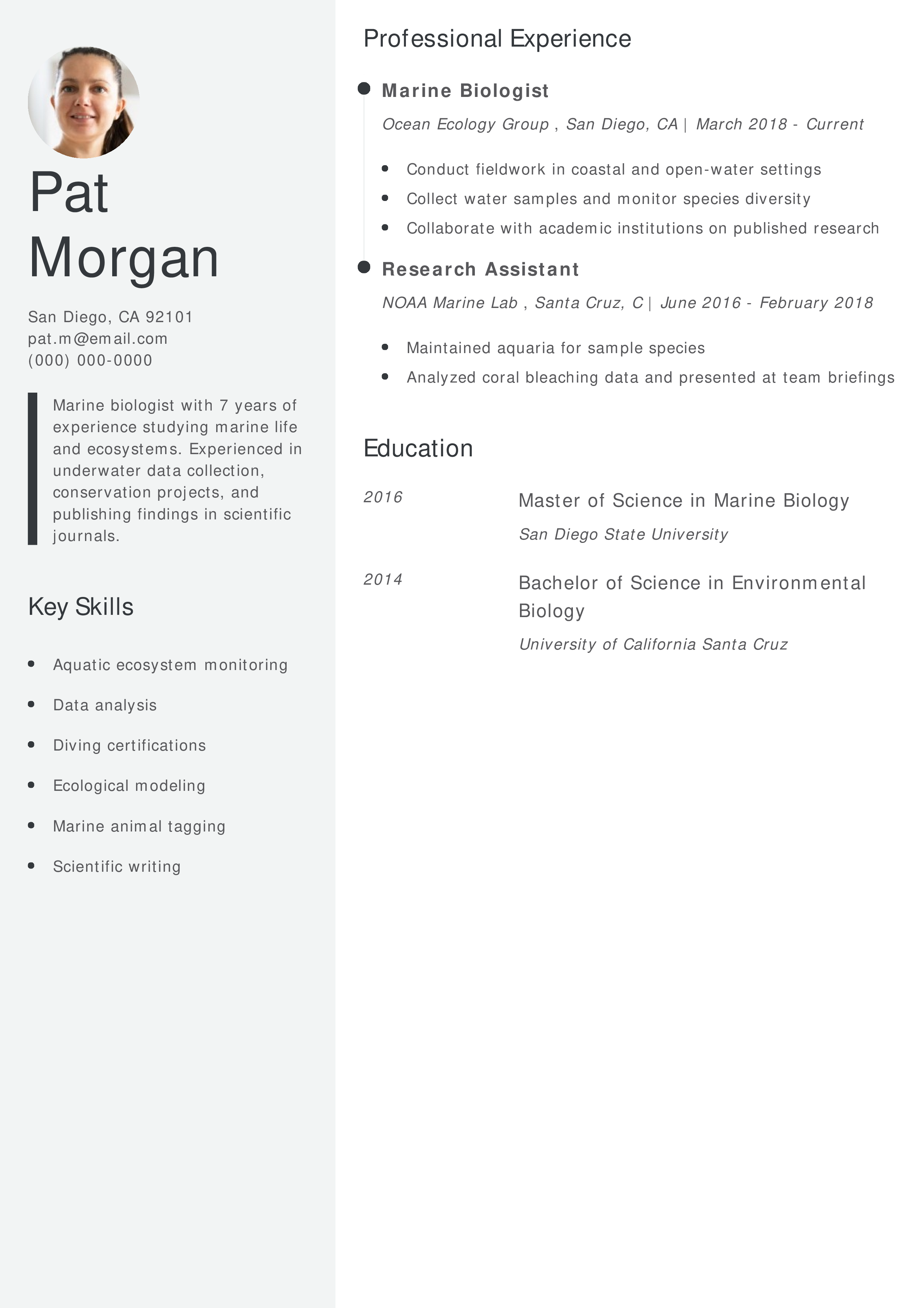 Marine Biologist Resume