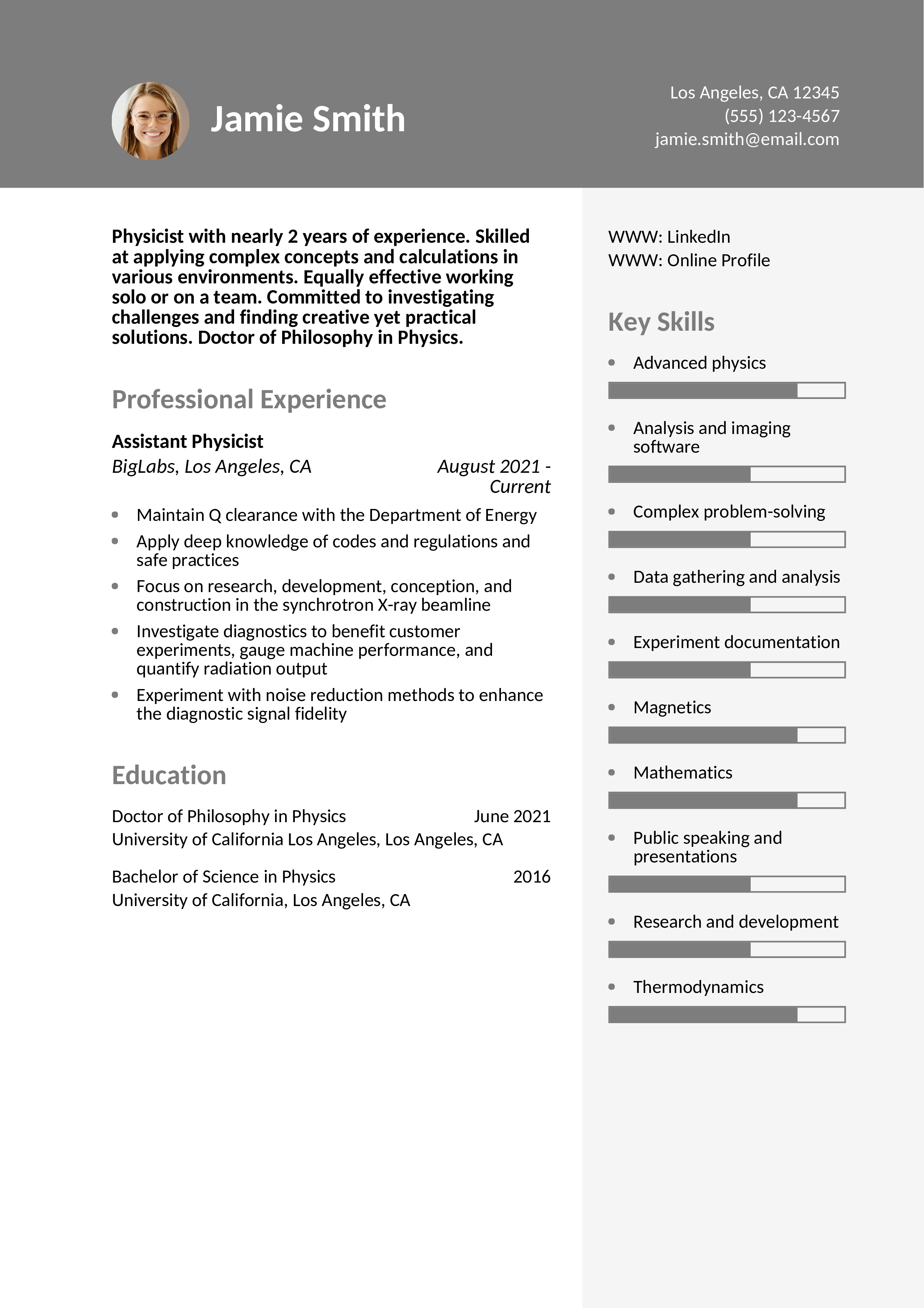 Physicist Resume