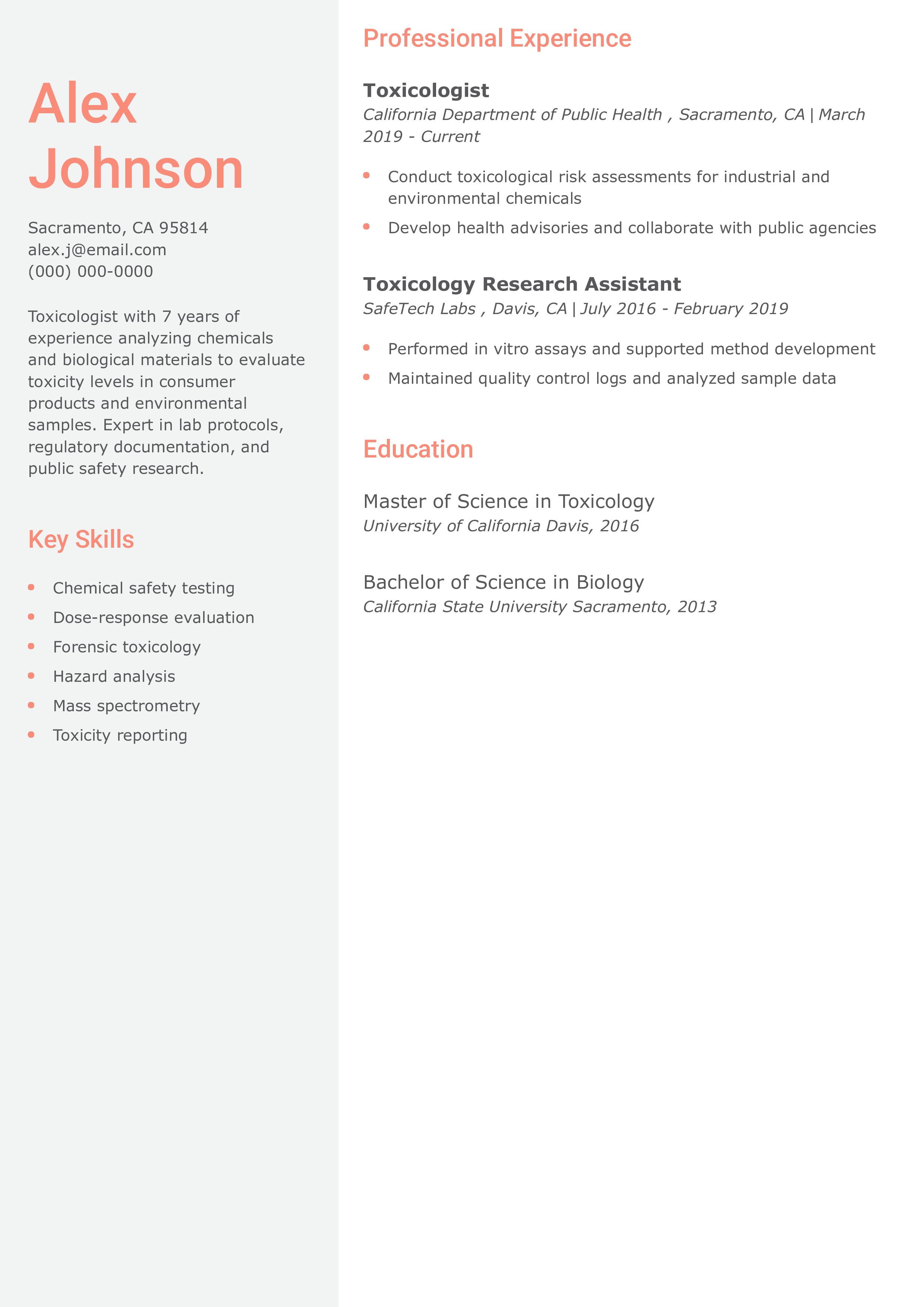 Toxicologist Resume