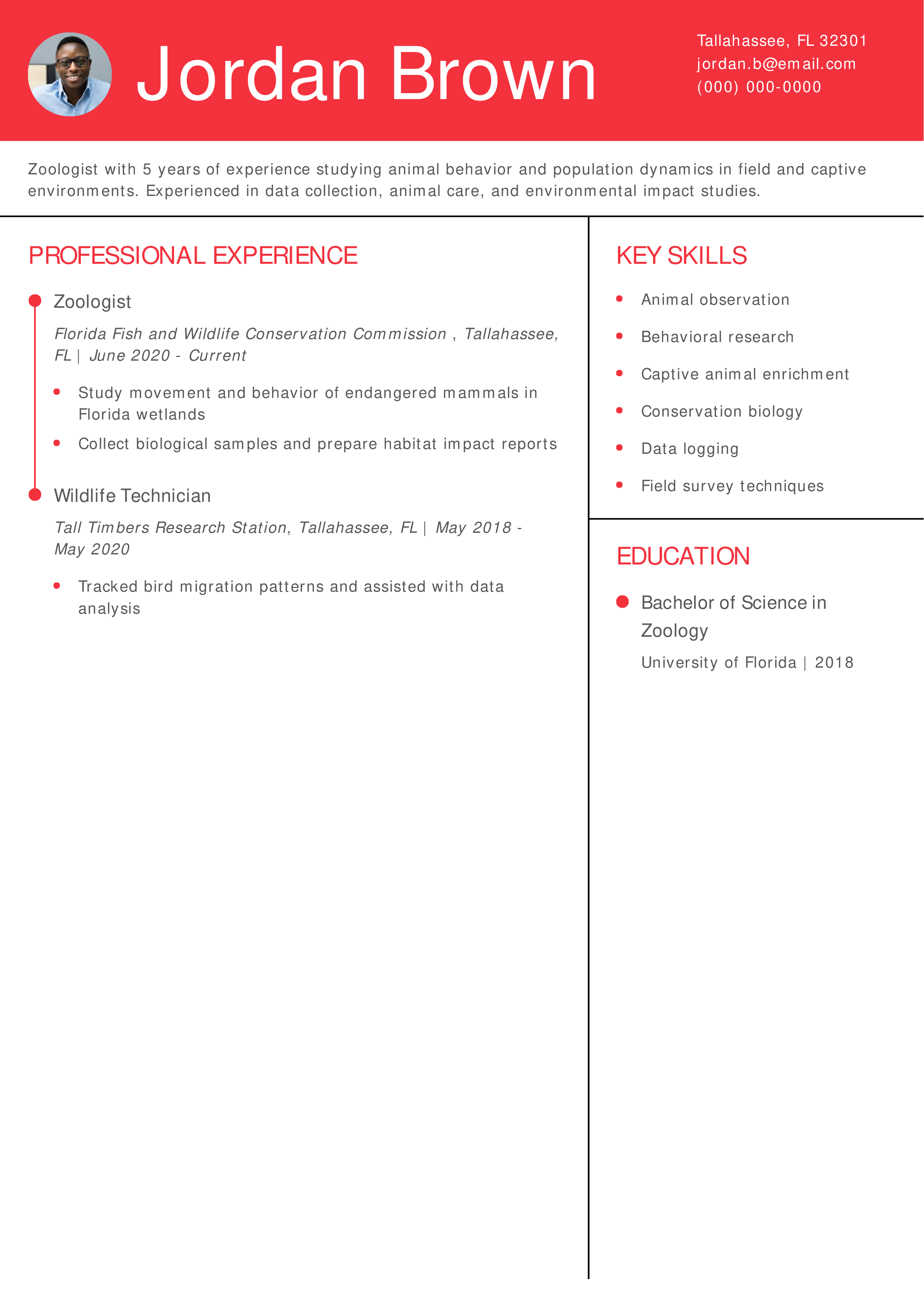 Zoologist Resume