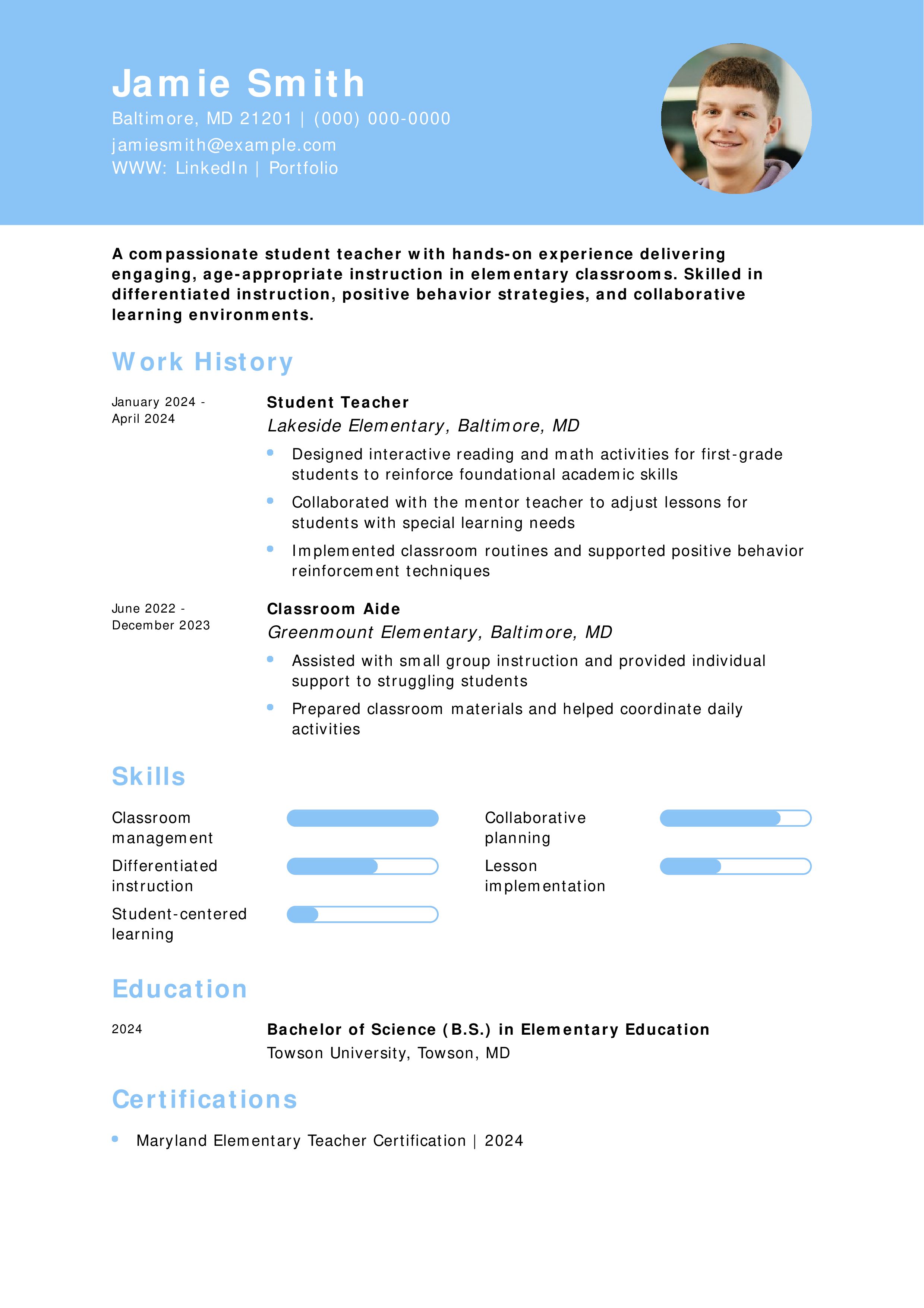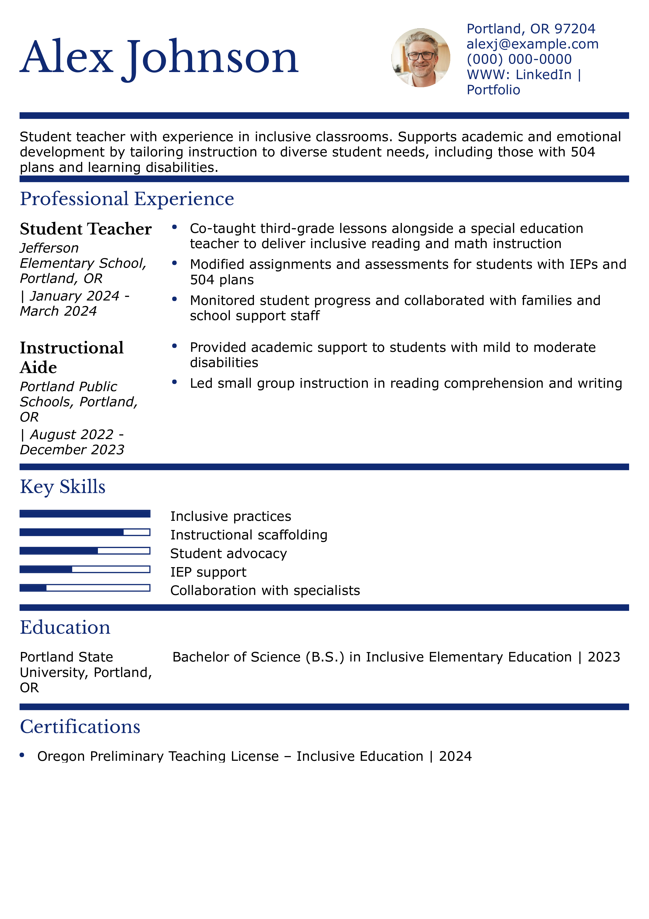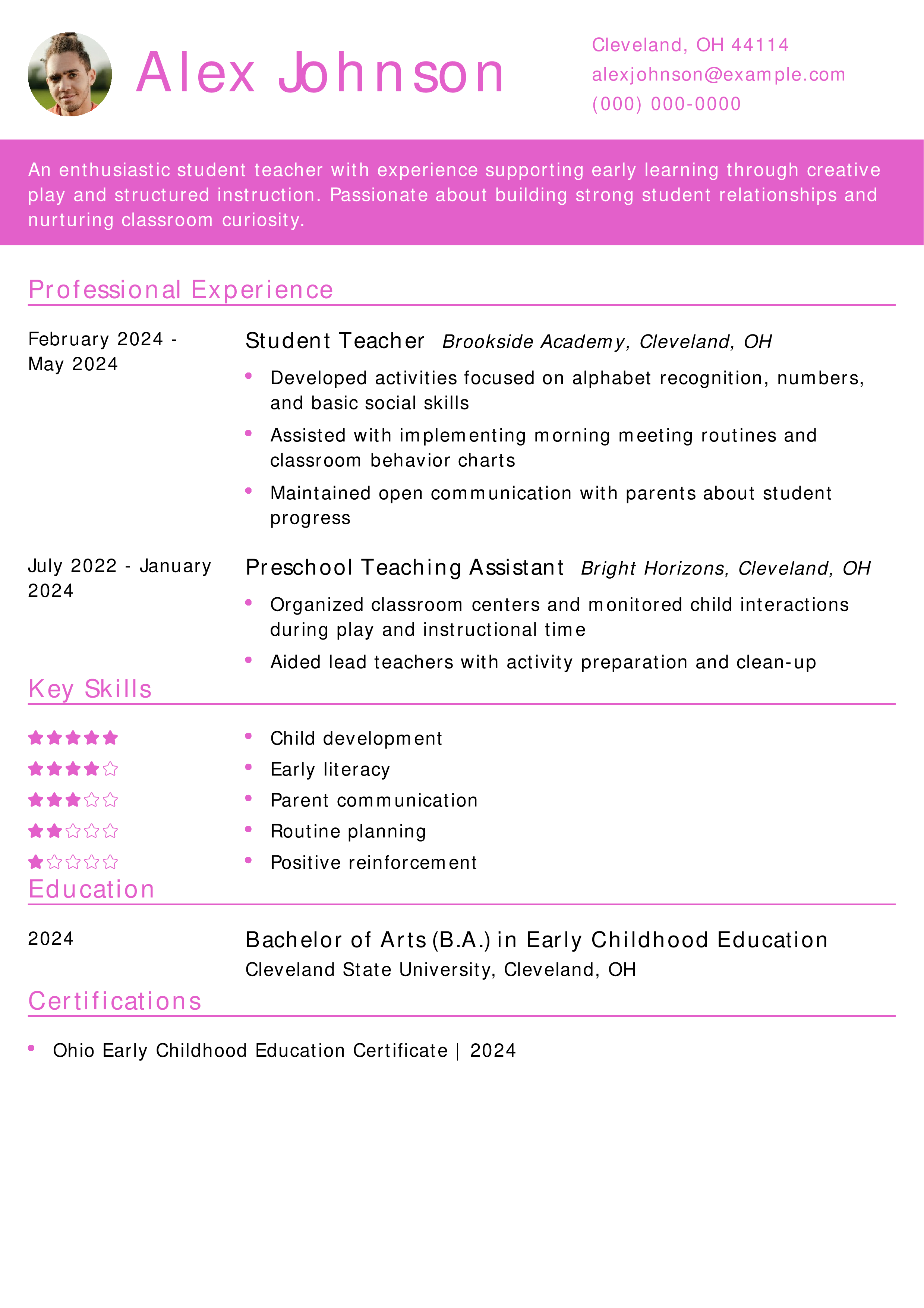 “Even if you’re just starting out, a student teacher resume should show your passion for education and your ability to apply theory in real classrooms. Focus on your adaptability, creativity, and growth.”