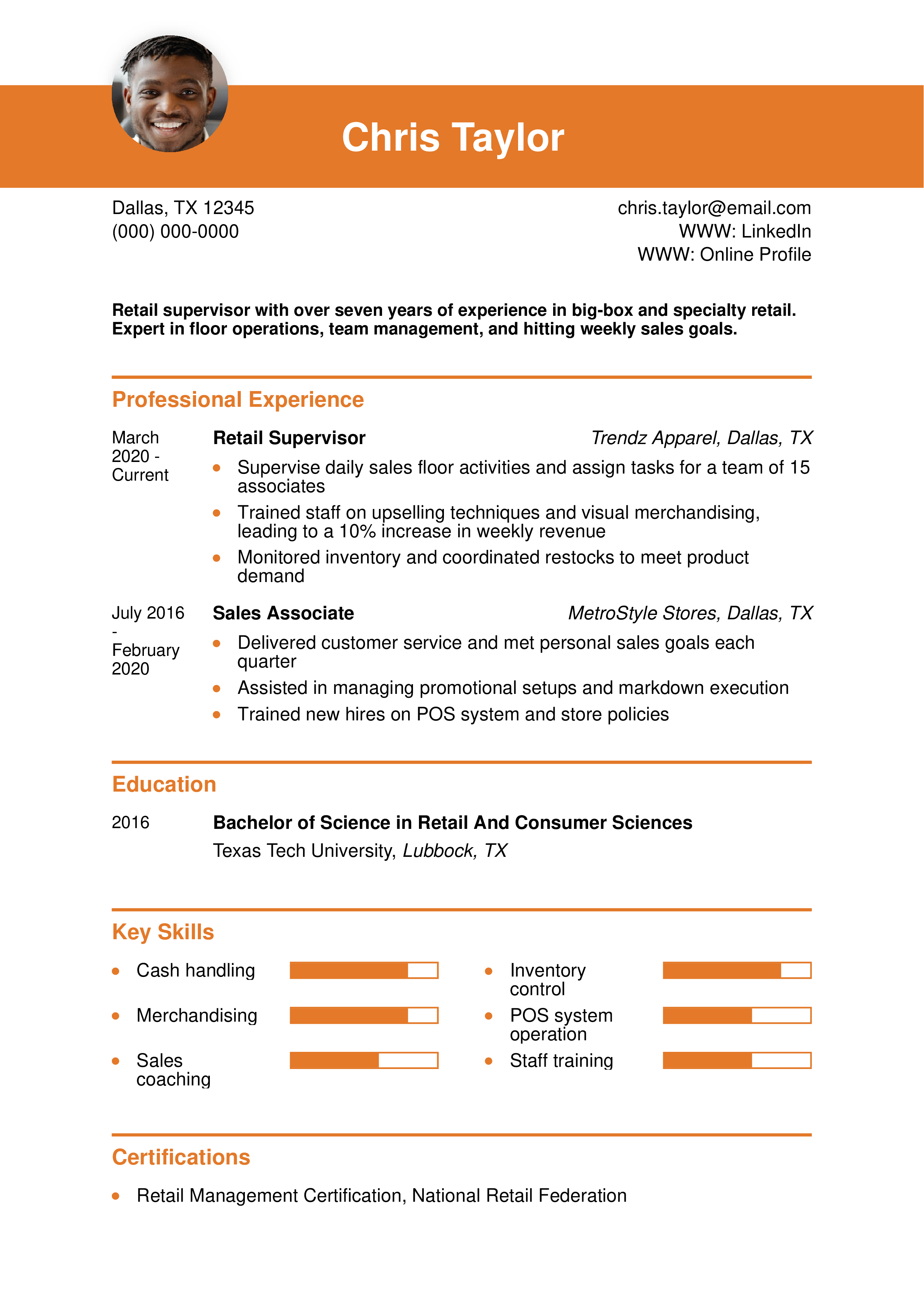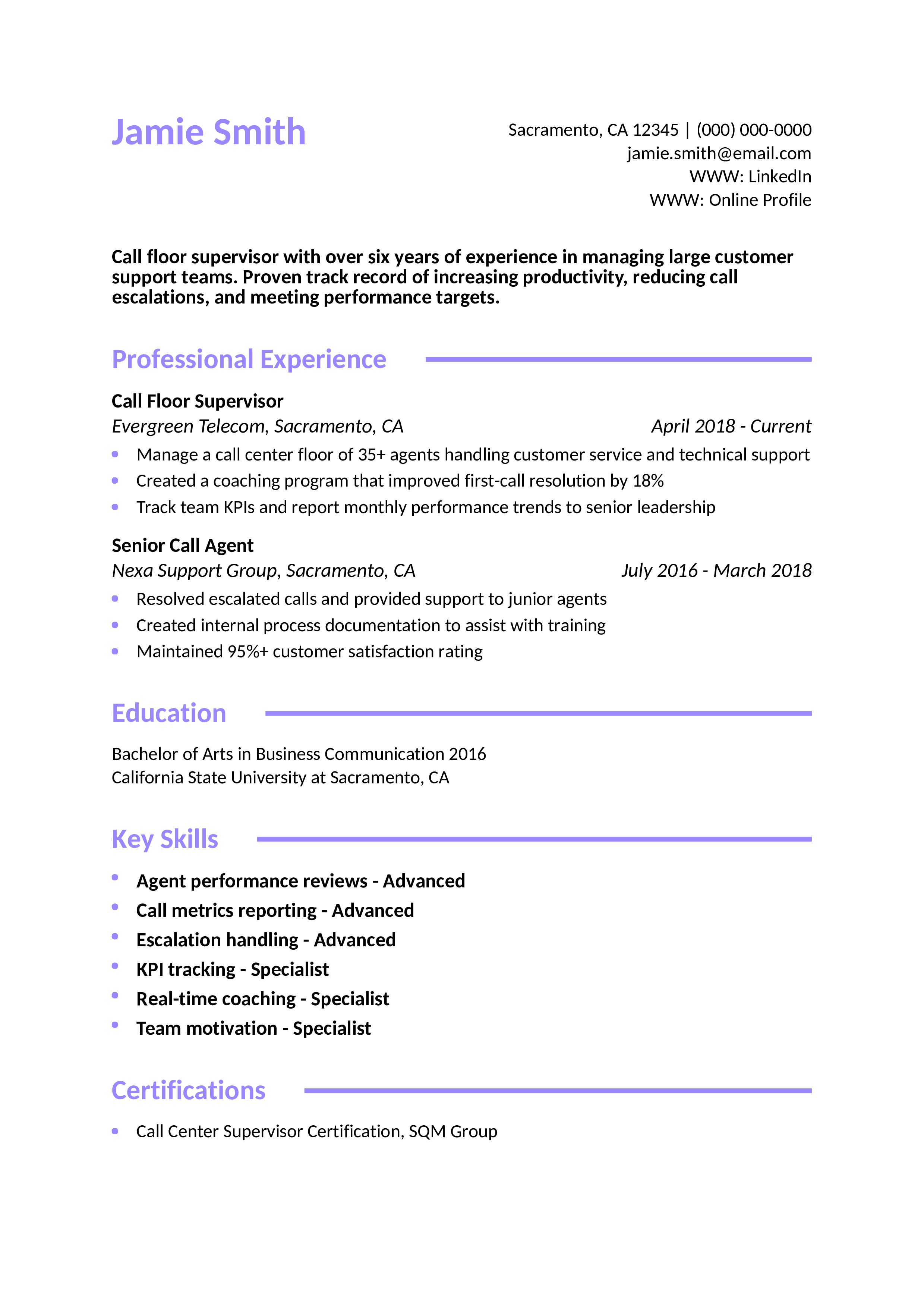 The best resume formats for supervisors are often chronological or combination formats. These formats allow you to feature your relevant experience in reverse chronological order while emphasizing your key skills and accomplishments. These formats work well for supervisors with a solid work history who want to showcase their career progression and highlight their many abilities and achievements.