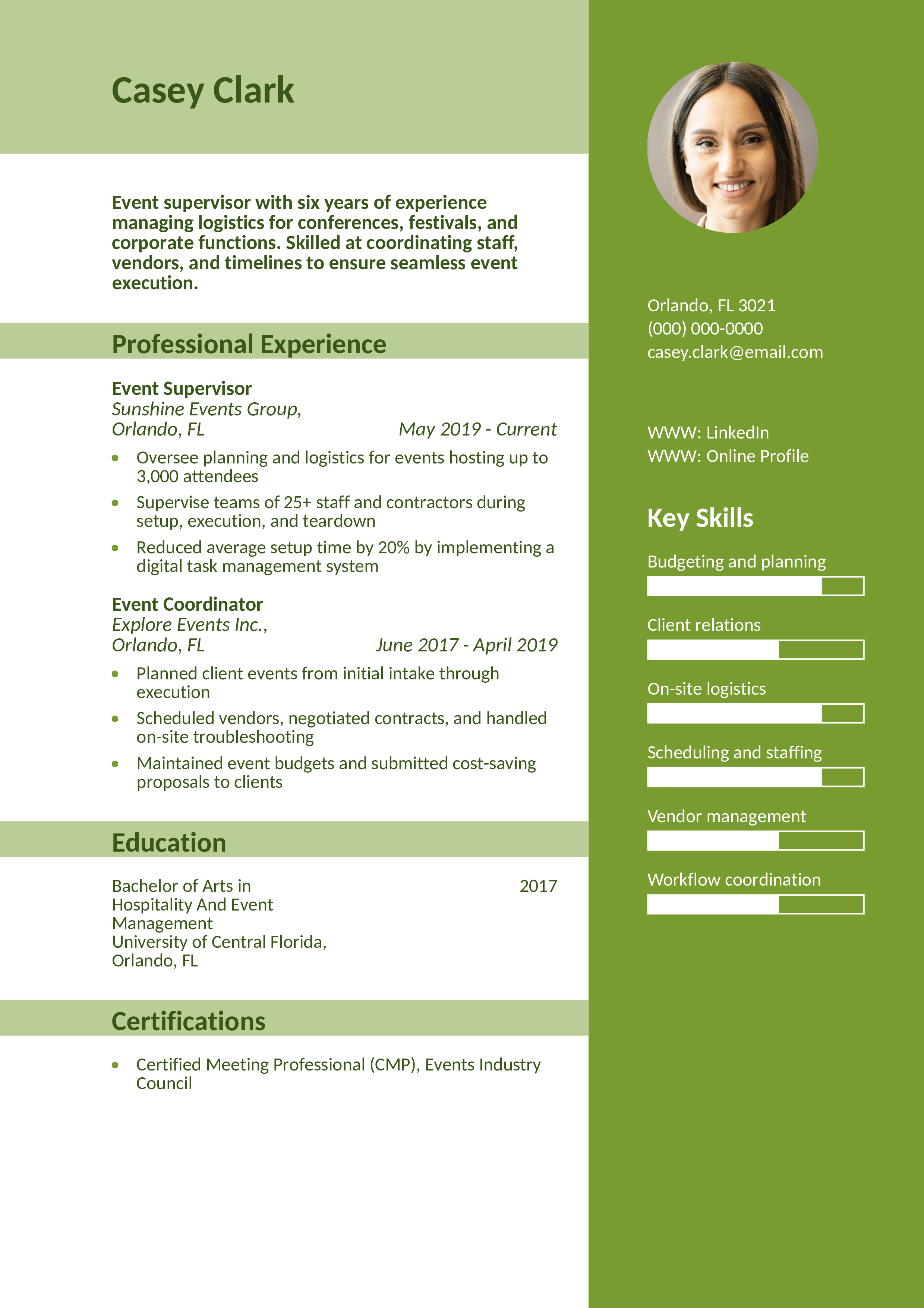 This resume outlines both the planning and execution sides of event supervision. See how to strengthen your resume summary to highlight your value to employers instantly.