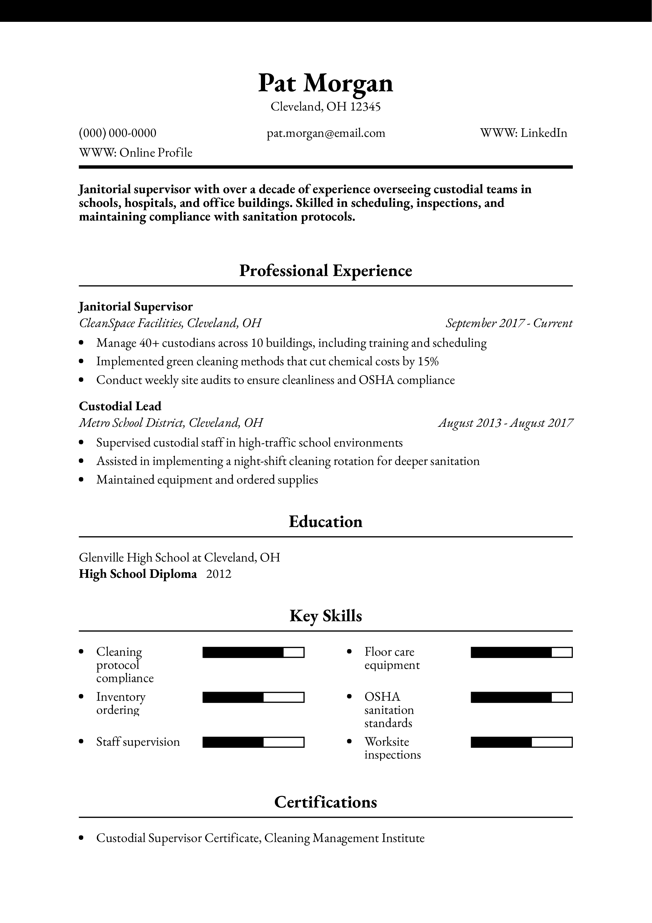 The best resume template for a supervisor is clean and orderly. Keep it simple and professional with plenty of white space. A clutter-free layout allows easy readability and ensures that your most relevant professional accomplishments and key skills take center stage.