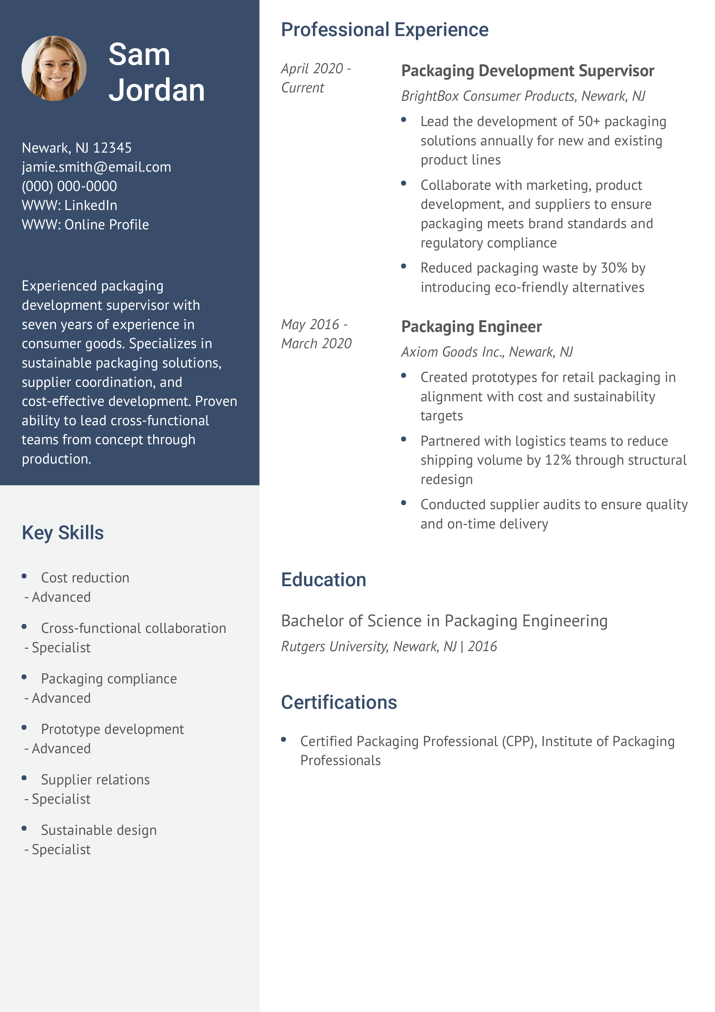 Packaging Development Supervisor Resume