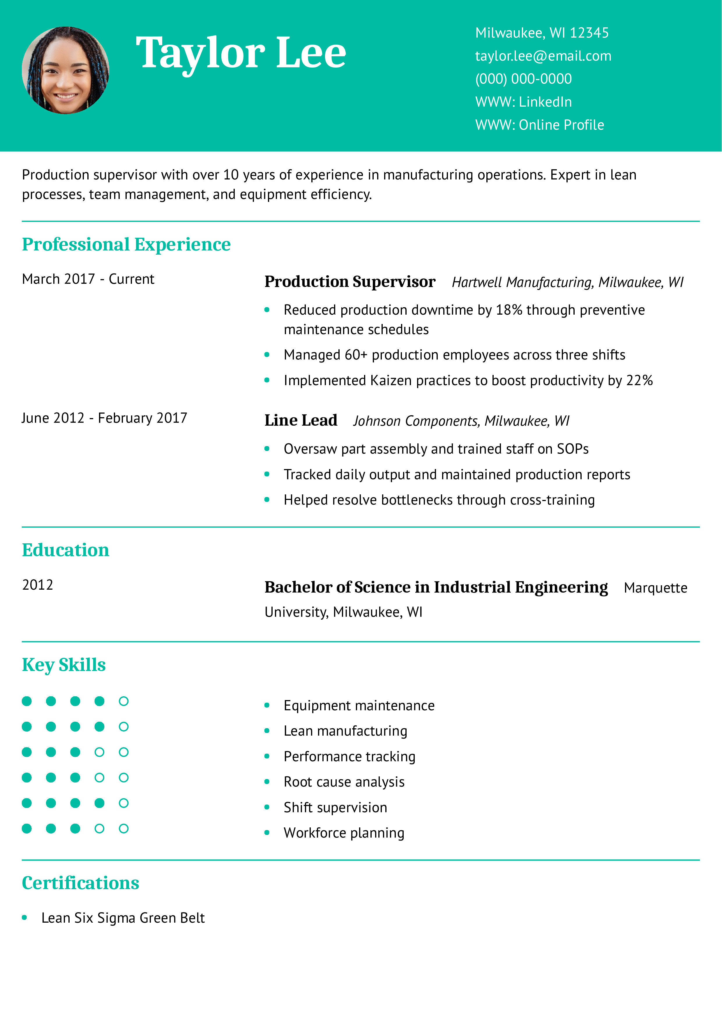 This resume shows strong leadership across shifts and a commitment to process improvements. See how to select the best resume format to highlight this kind of continuous growth.
