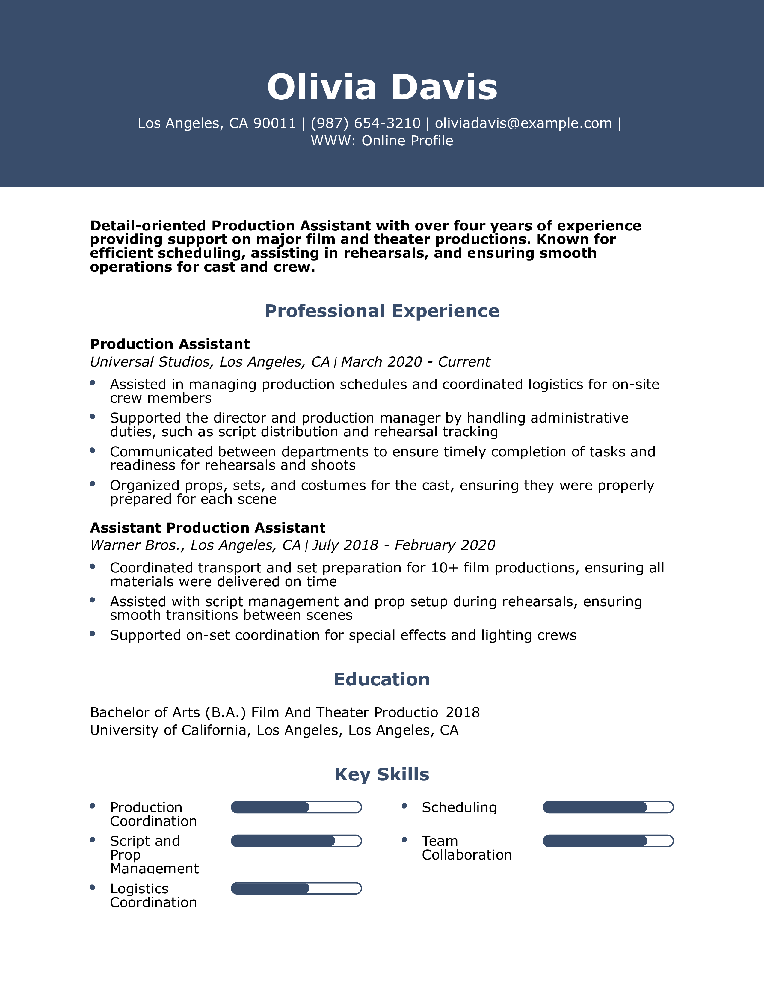 - Managed performance schedules, including rehearsals, blocking, and production deadlines