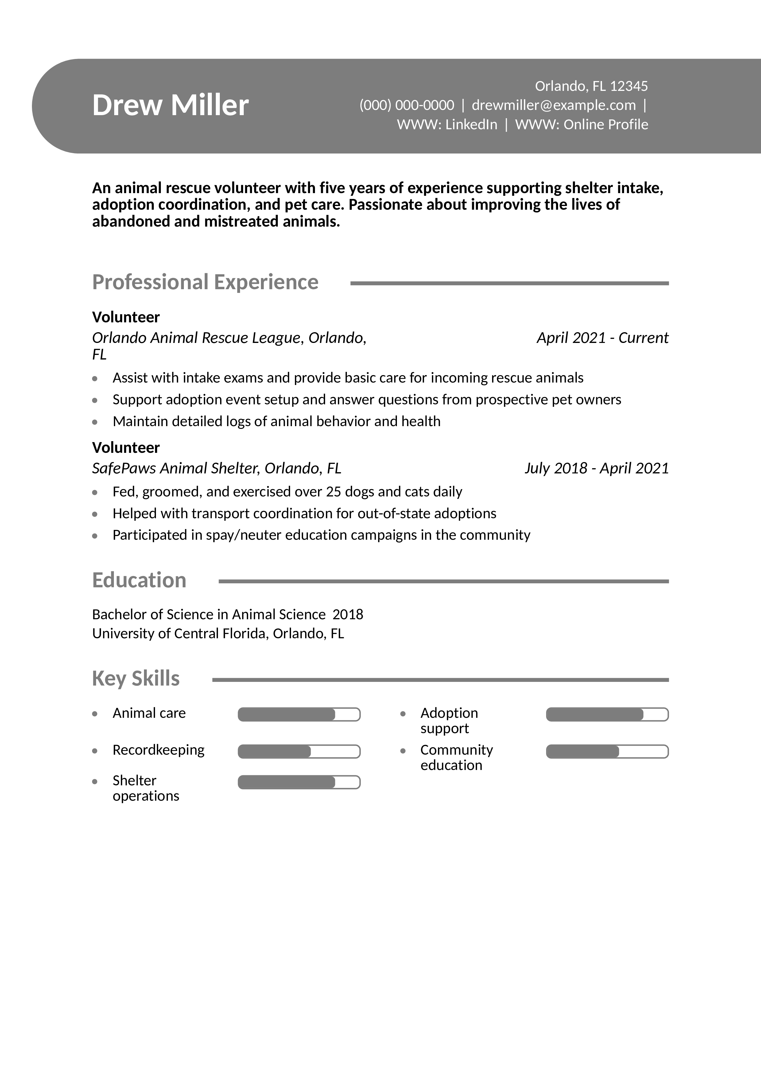 Animal Shelter Volunteer Resume