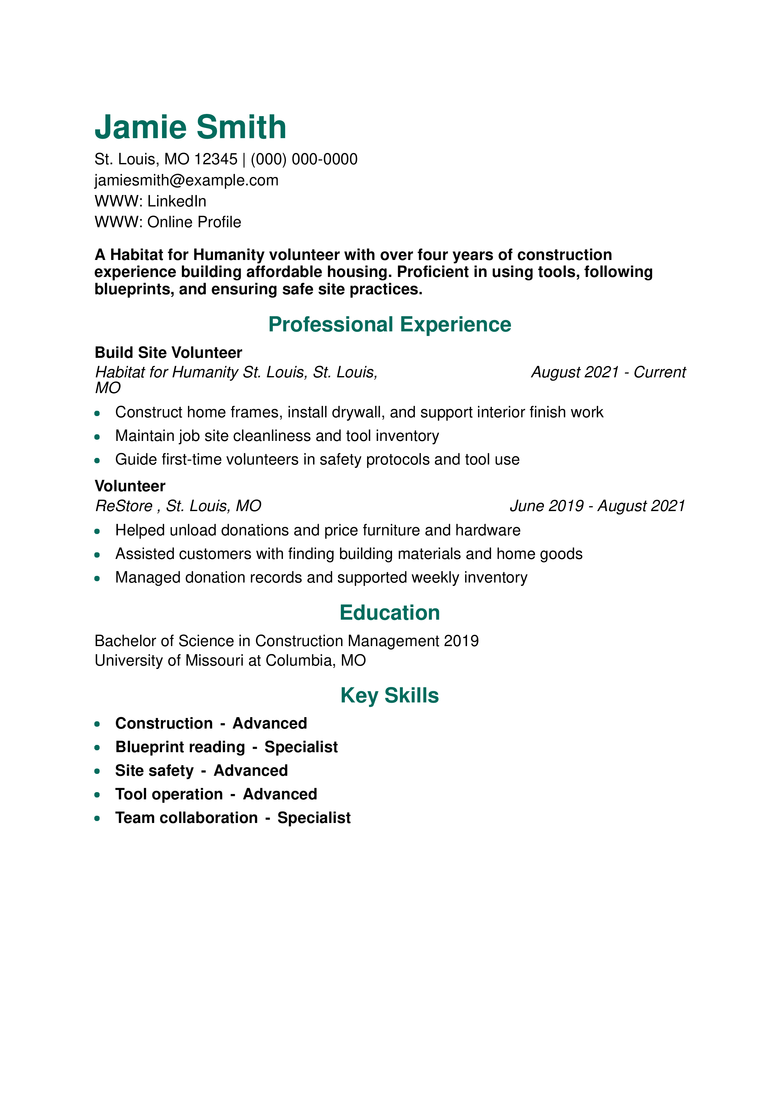 Habitat for Humanity Volunteer Resume