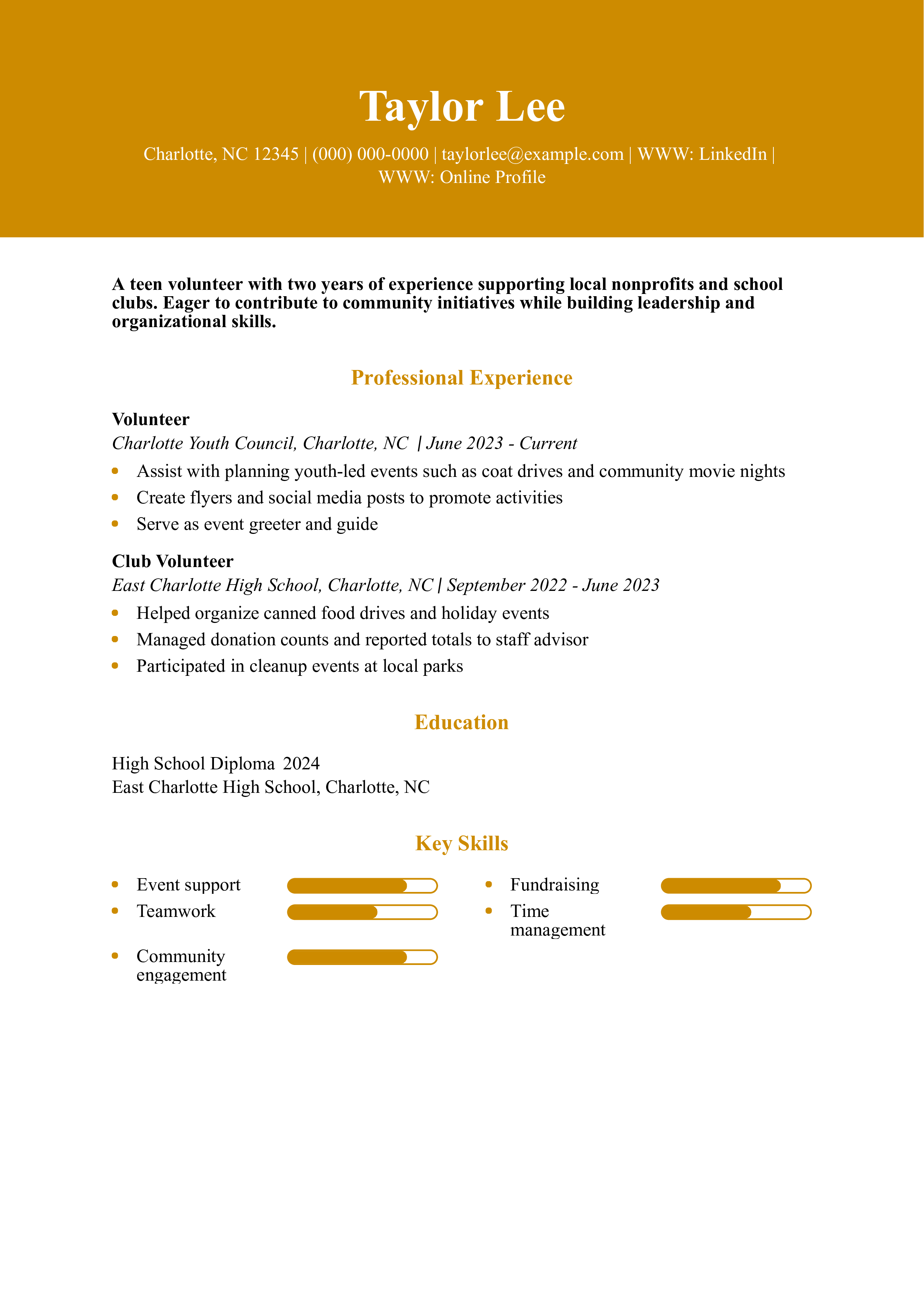 Teen Volunteer Resume