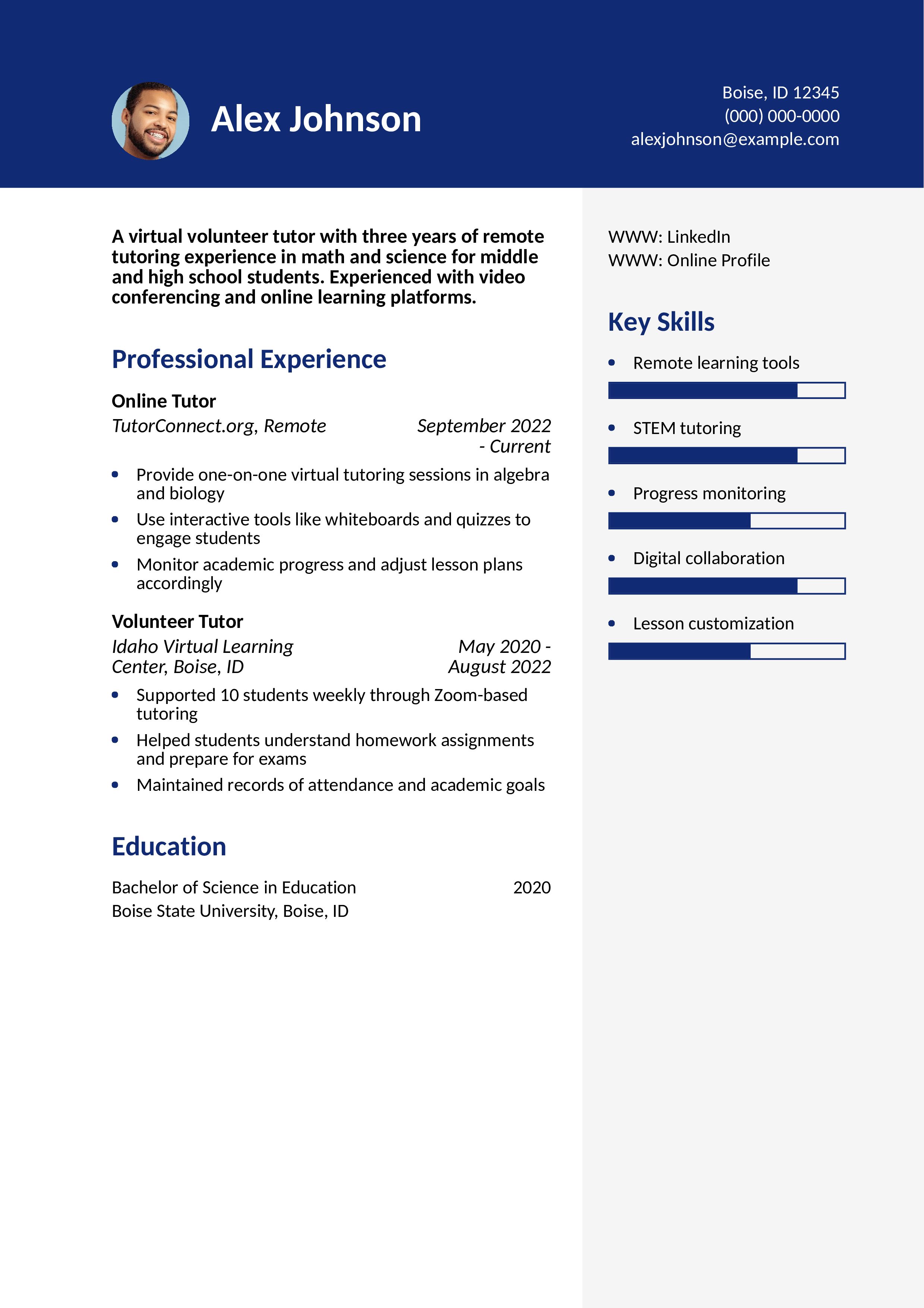 Virtual Volunteer Tutor Resume